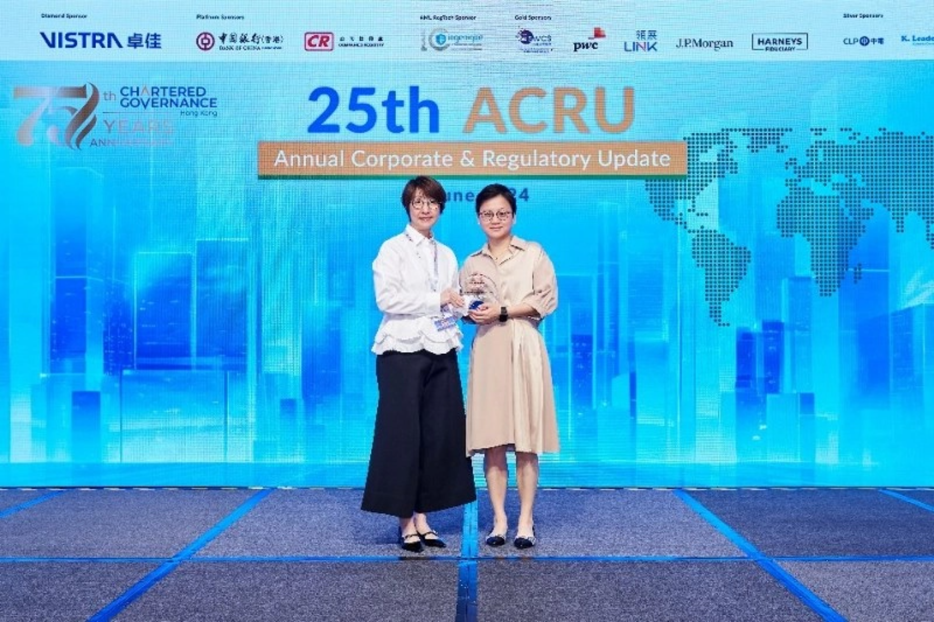 The 25th Annual Corporate and Regulatory Update (ACRU 2024), organized by the Hong Kong Chartered Governance Institute, was successfully concluded last week. 6 regulators (Companies Registry, Securities and Futures Commission, Hong Kong Exchanges and Clearing Limited, Competition Commission, Office of the Privacy Commissioner for Personal Data, Hong Kong, Hong Kong Business Ethics Development Centre, ICAC) have been invited to share the key regulatory focuses and enforcement trends in the past year with governance professionals. It enables companies to leverage on governance practitioners to further enhance corporate governance standards and drive a better future for Hong Kong's capital markets.