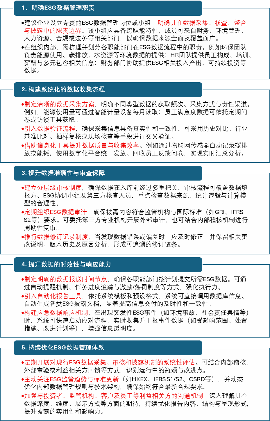•  定期回顾ESG数据管理效果,进行内审与改进。